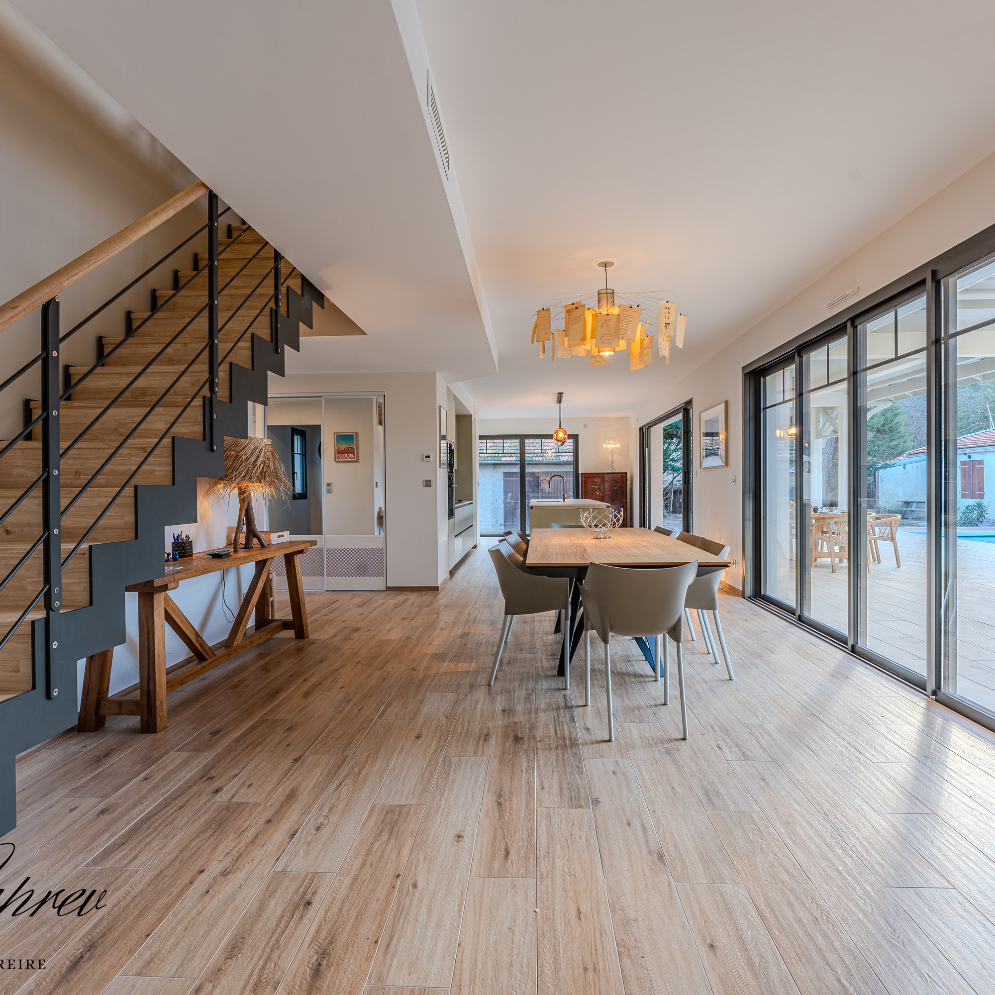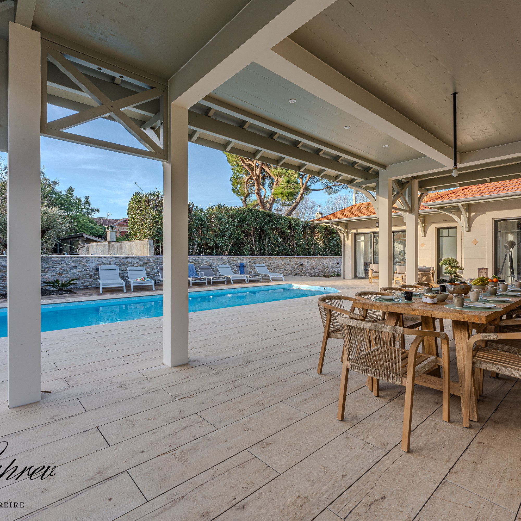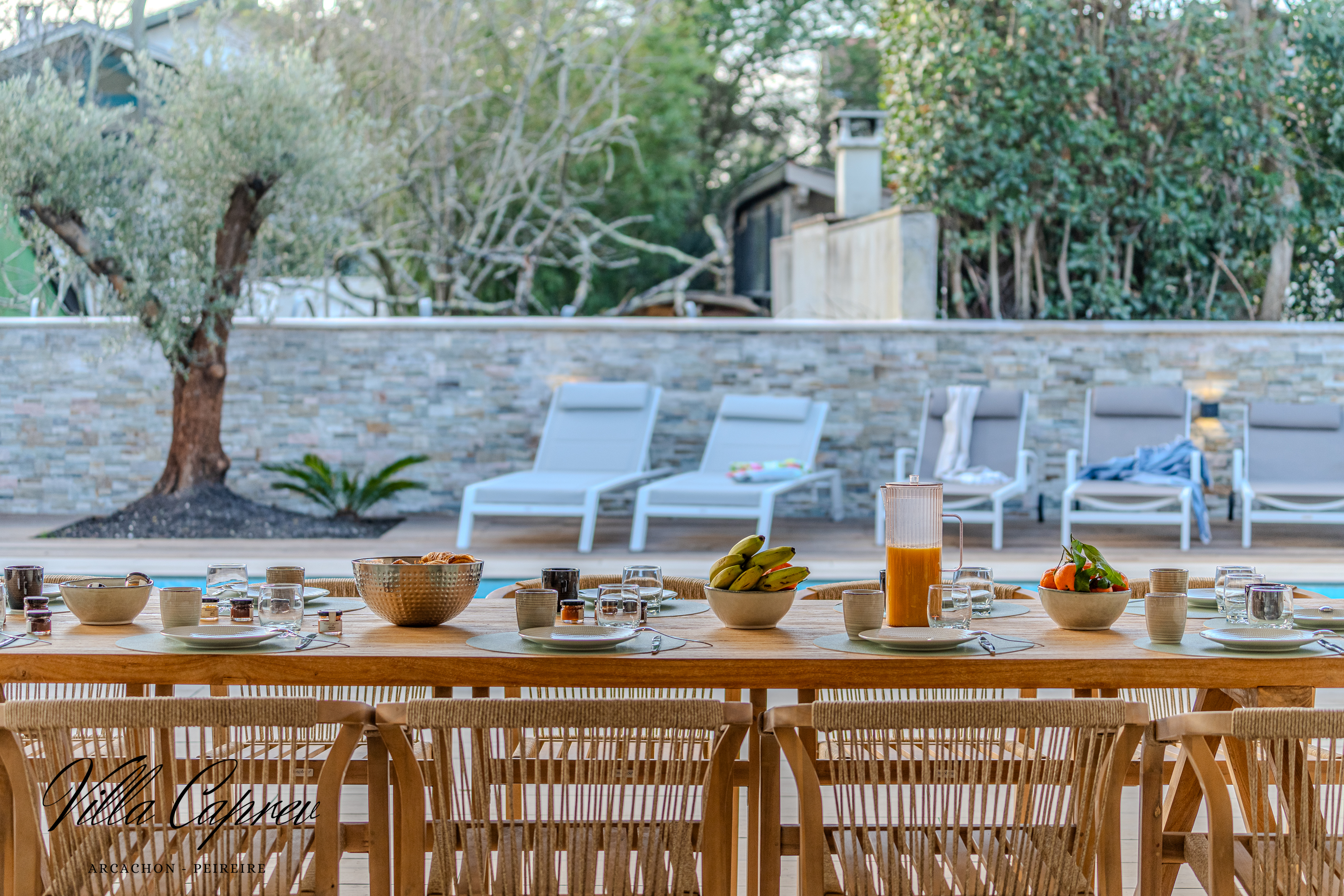 Vous apprécierez une maison moderne et climatisée, décorée avec goût et avec des matériaux de qualité dans le respect du style arcachonnais.