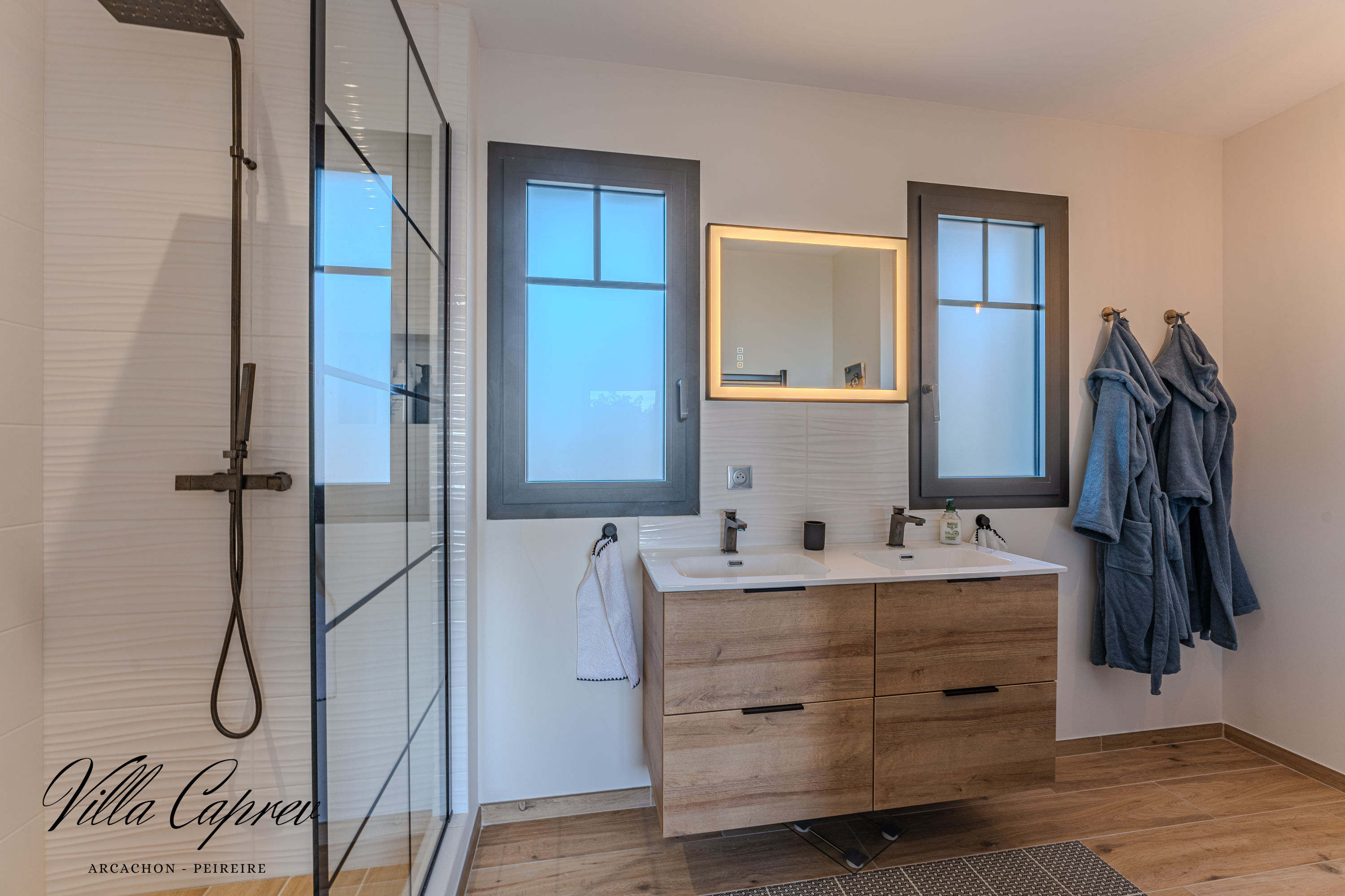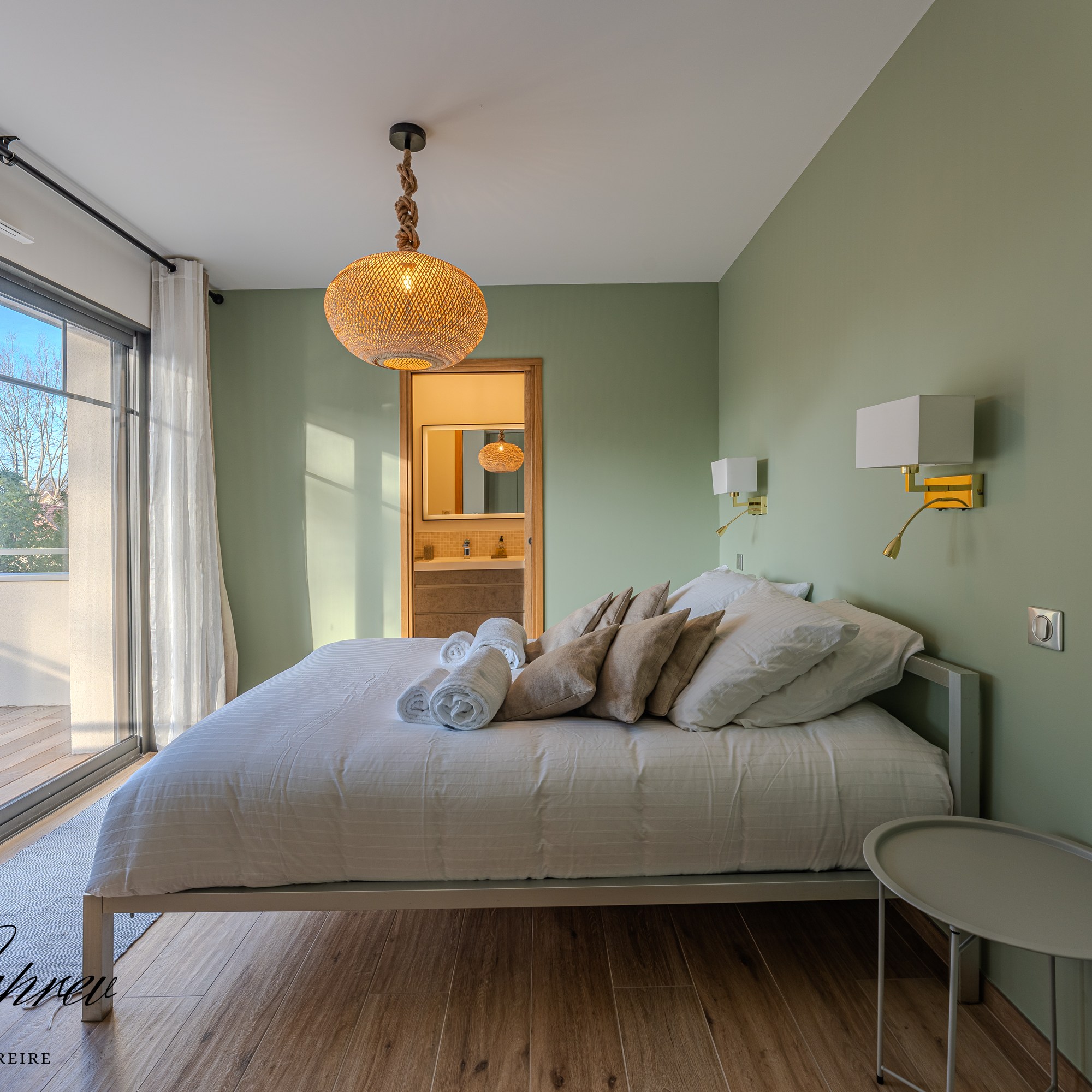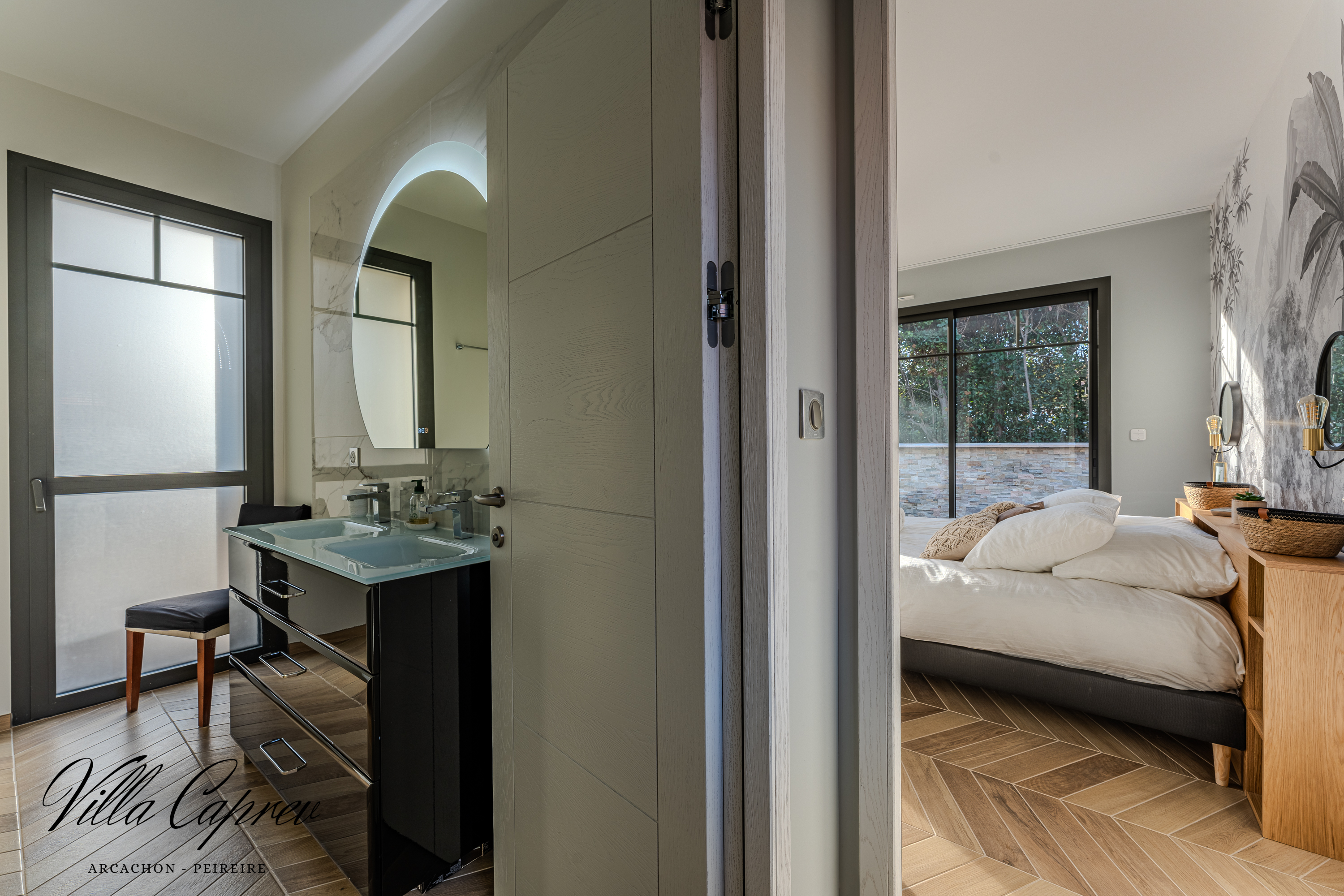 Vous apprécierez une maison moderne et climatisée, décorée avec goût et avec des matériaux de qualité dans le respect du style arcachonnais.